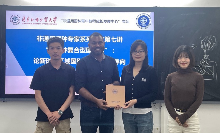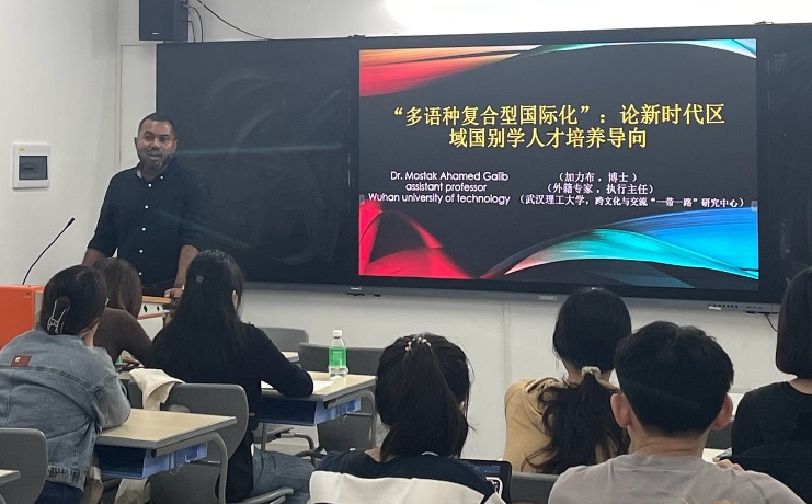 随后,加力布教授围绕学习小语种的优势与机遇,与同学们探讨了“语言习得者如何更好地成为国际复合型人才”这一话题,并从“区域国别“的定义、来源历史、团队建设建议及”一带一路“视域下的区域国别研究这四个方面详细地讲解了在新时代新征程下、在世界”百年未有之大变局“中,该如何推进区域国别这一学科的发展。加力布教授强调,区域国别作为新兴学科,未来仍有很大发展潜力和空间,鼓励同学们更加深入地进行了解与学习。