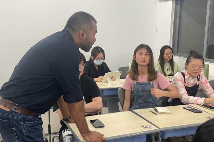 在交流提问环节,现场同学们积极提问,踊跃发言。加力布教授对同学们关于“选择区域国别学科的缘由”、“孟加拉国人民对中国的看法”以及“如何看待语言学习与人工智能翻译之间的矛盾”等问题的疑惑一一作出耐心解答,与同学们进行深入交流。此外,加力布教授还从自己的经历出发,回顾了学习中文的初心以及遇到的困难,鼓励同学们要立足于东南亚以及南亚这两个大市场,着眼于当今语言学习的变化,在运用好语言这一工具的同时适当结合另一专业的学习拓宽自己的发展道路,在已选择的专业方向上要用“坚持”克服难题。在座师生都受益匪浅,收获满满。