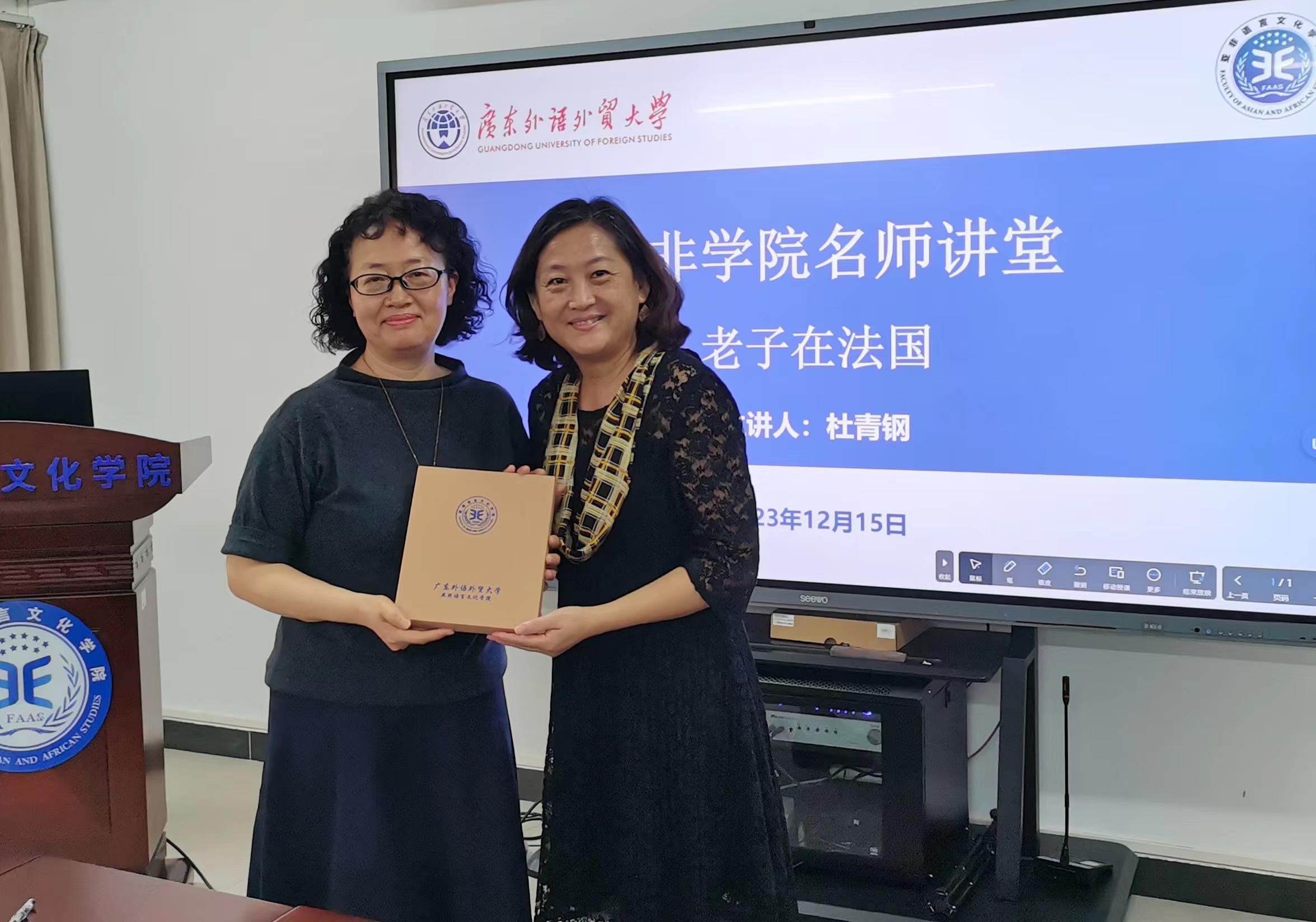 12月15日下午,法国龚古尔文学奖中国评选组委会主席、武汉大学杜青钢教授受邀做客亚非名师讲堂,做题为“老子在法国”的学术讲座。讲座由永利集团3044am主办,永利集团3044am教师党支部、公司文学与翻译学研究团队承办,广东省科学技术厅交流合作处杨慧芳处长、永利集团3044am、东语公司等30余名师生参加。讲座由永利集团3044am经理助理田克萍主持。