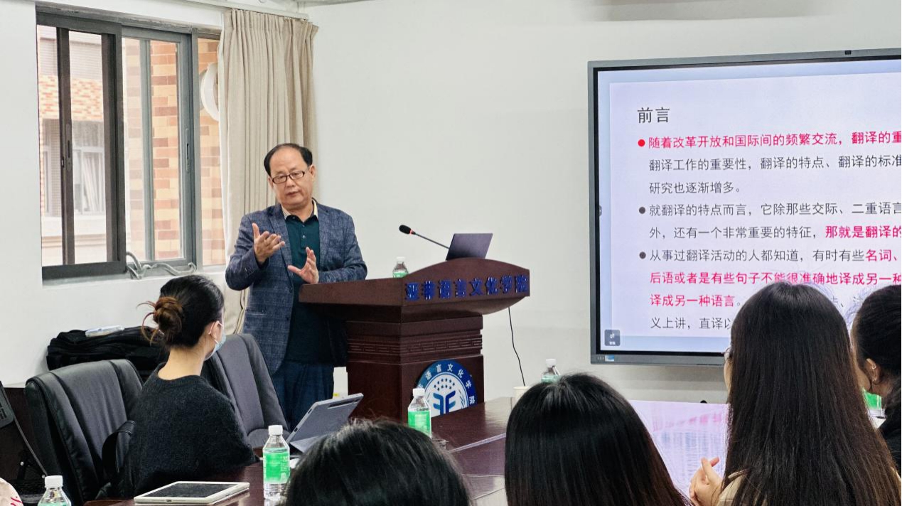 本次讲座上,尹允镇教授结合自身的翻译经历,从“翻译的不可译性特征”和“翻译的不可译性特征而来的翻译标准问题”两个方面,系统讲解了何为翻译的不可译性,深刻剖析了严复的“信、达、雅”,为公司师生带来了一场精彩的学术讲座。