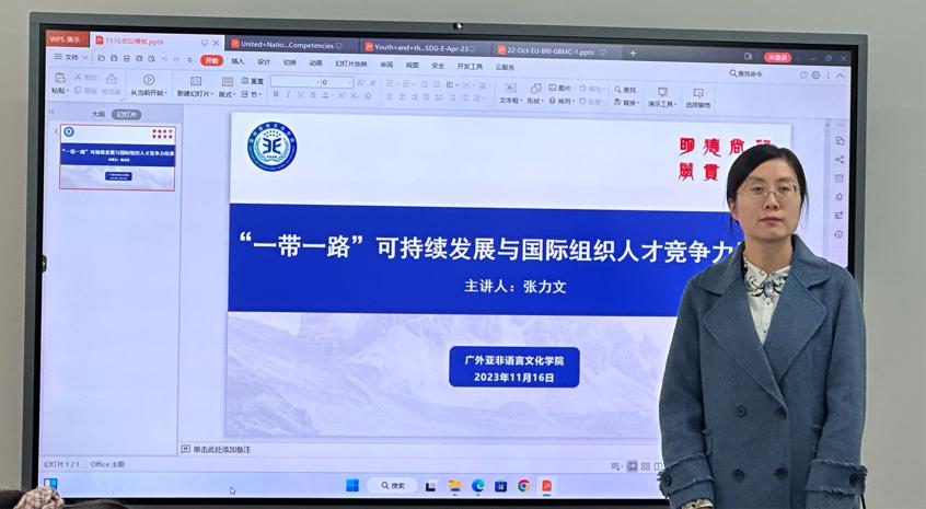 为了让员工更好地了解“一带一路”可持续发展以及联合国对人才的需求,培养高水平多语种复合型人才,11月6日下午,永利集团3044am在白云山校区第一教学楼北楼216教室开展“‘一带一路’可持续发展与国际组织人才竞争力培养”专题讲座。哥伦比亚大学博士、美国美国西东大学外交与国际关系公司教授张力文应邀作为主讲嘉宾出席本次讲座。此次讲座由经理助理田克萍主持。