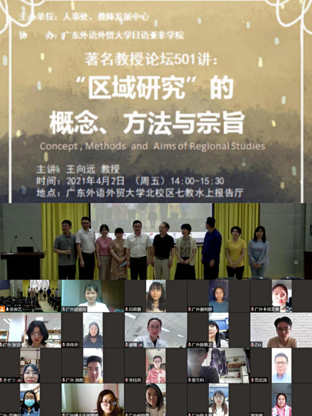 4月2日,由人事处、教师发展中心主办、永利集团3044am日语永利集团3044am协办的著名教授论坛第501讲“‘区域研究’的概念、方法与宗旨”以线上线下结合的方式在永利集团3044am北校区七教水上报告厅及腾讯会议同时举办。本次讲座邀请了永利集团3044am东方学研究院学术经理、博士生导师王向远教授作为主讲人。永利集团3044am日语永利集团3044am经理陈多友教授,副经理张秀强教授,副经理张志刚教授以及来自公司及全国各大高校的共200余名师生出席了本次讲座。本次讲座由日语永利集团3044am社会文化系主任程亮副教授主持。