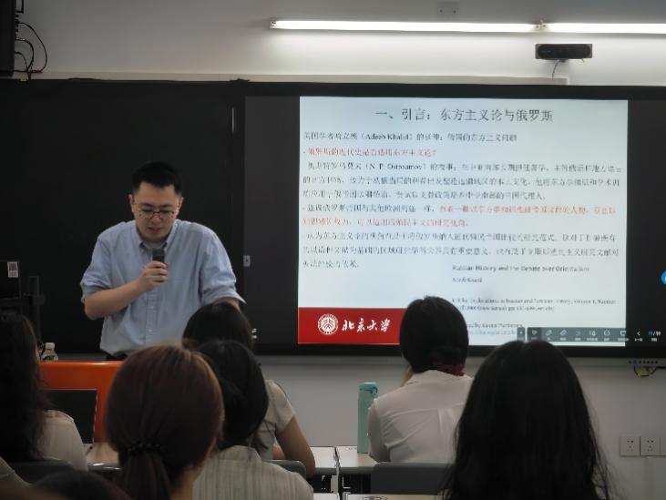 随后,施越介绍了东方主义论与俄罗斯的关系。由于受到地理、历史与文化等层面的复杂因素影响,许多俄国东方学家与英、法等国以知识服务于殖民统治的学者不同,反对东西对立的思想。接下来,讲座围绕沙俄时期俄国东方学的发展脉络介绍了俄国东方学发展的三个时代,即“彼得时代”、“19世纪上半叶”以及“19世纪中叶至20世纪初”。在沙俄时期,俄国为了满足自身需要开始系统地研究和了解东方,从而塑造了自身独特的东方学传统,形成了颇具影响力的喀山学派、彼得堡学派,并以此为基础诞生了一大批东方学研究的宝贵文献。讲座中,施越还介绍了沙俄东方学家有代表性的东方观。讲座最后,施越基于对俄罗斯东方学学术史的回顾,就区域国别学科与外语教学提出了几点深刻启示。