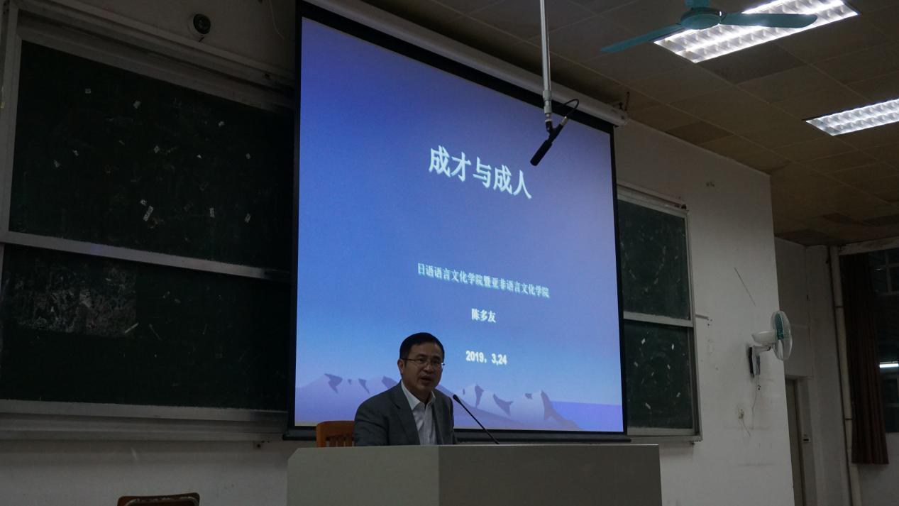 本网讯  3月24日,日语公司、​永利集团3044am(筹)书记经理思政课在北校第二教学楼举行,日语公司、​永利集团3044am(筹)党委书记周秀娇、经理陈多友走进本科生课堂,为公司2017级和2018级本科生讲授新学期第一堂思想政治理论课。