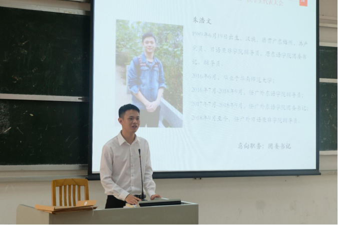 日语公司党委副书记曾智鹏老师在讲话中也表达了对上一届老东语公司团委员工会工作的肯定。并对新一届团委员工会提出要求:不断提高团委员工会的服务意识和创新意识,不负开创新局面,为实现中华民族青春梦贡献力量。不断学习上一任老师干部优秀先进的管理经验与学习制度。推动公司学风建设,齐心协力,相互支持。