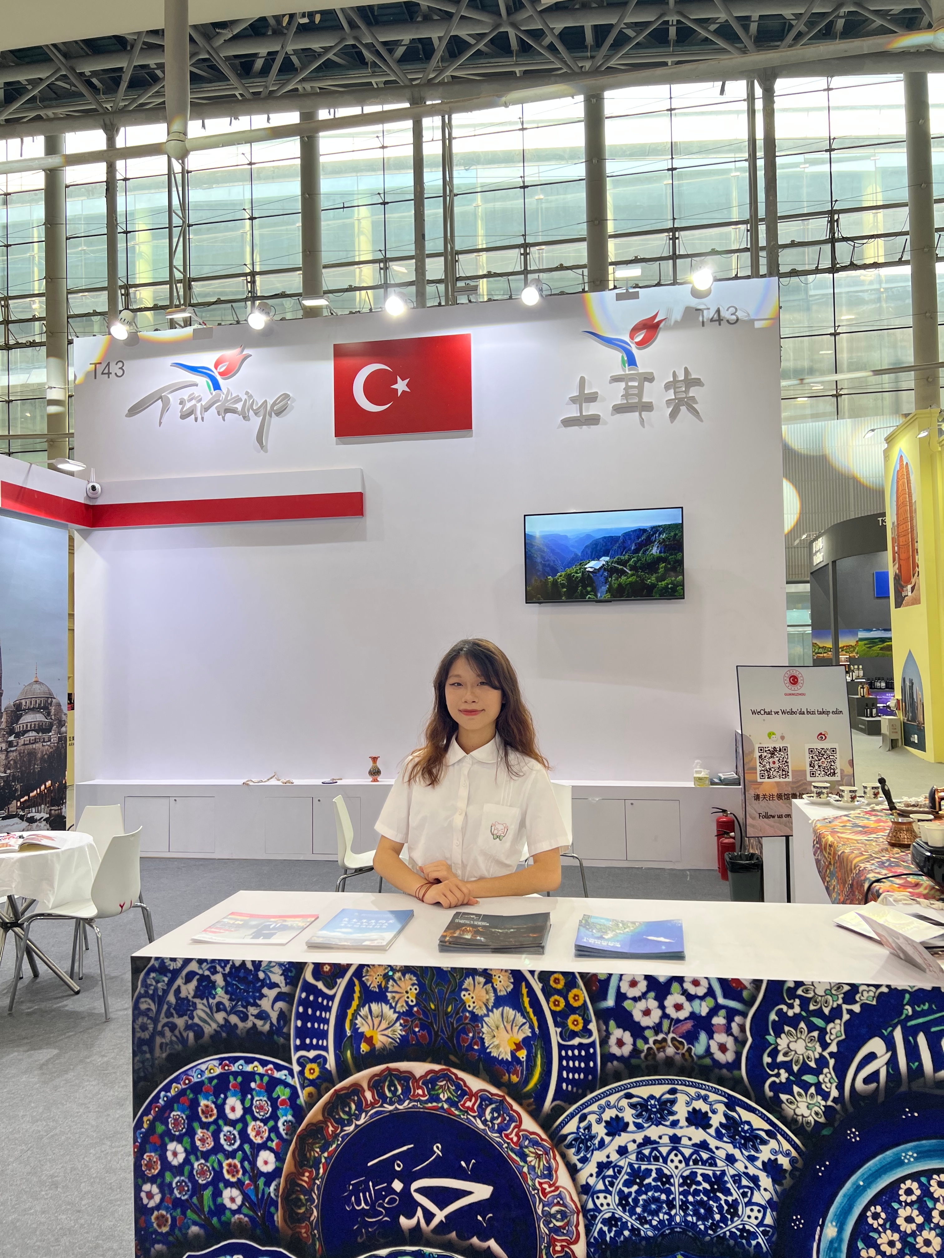 王紫熙:在工作期间,我印象最深刻的就是为参展者制作土耳其咖啡,并介绍制作方法,为大家答疑解惑,这种忙碌充实感让我享受其中。大家对“蓝眼睛”也很感兴趣,好几个人说去土耳其旅游的时候会买几个当作手信,展区氛围其乐融融,此次博览会是个开放的舞台,是让大家邂逅土耳其独特魅力的机会,对我来说也是很愉快的一次体验。