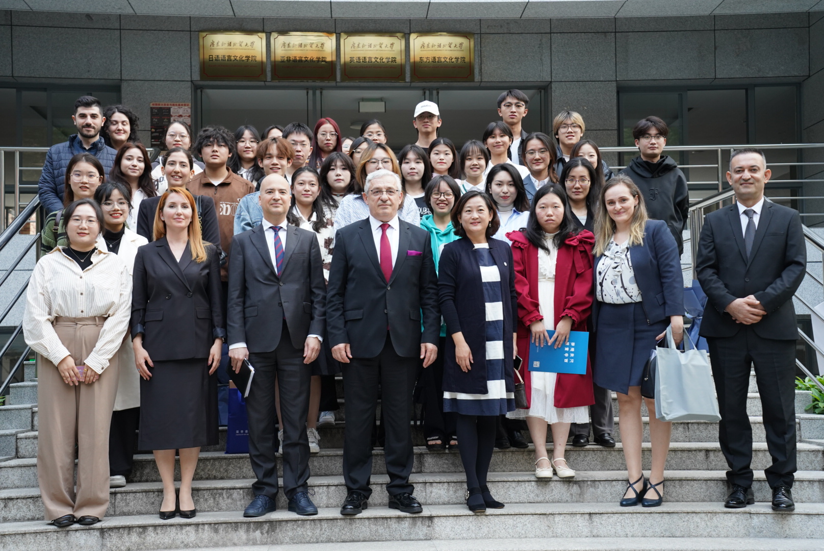 会后,伊斯梅尔•哈克•穆萨大使一行到访公司与公司土耳其语专业师生展开亲切交流。公司党委书记梁洁、副经理牛子牧、土耳其语系师生热情接待了大使一行。