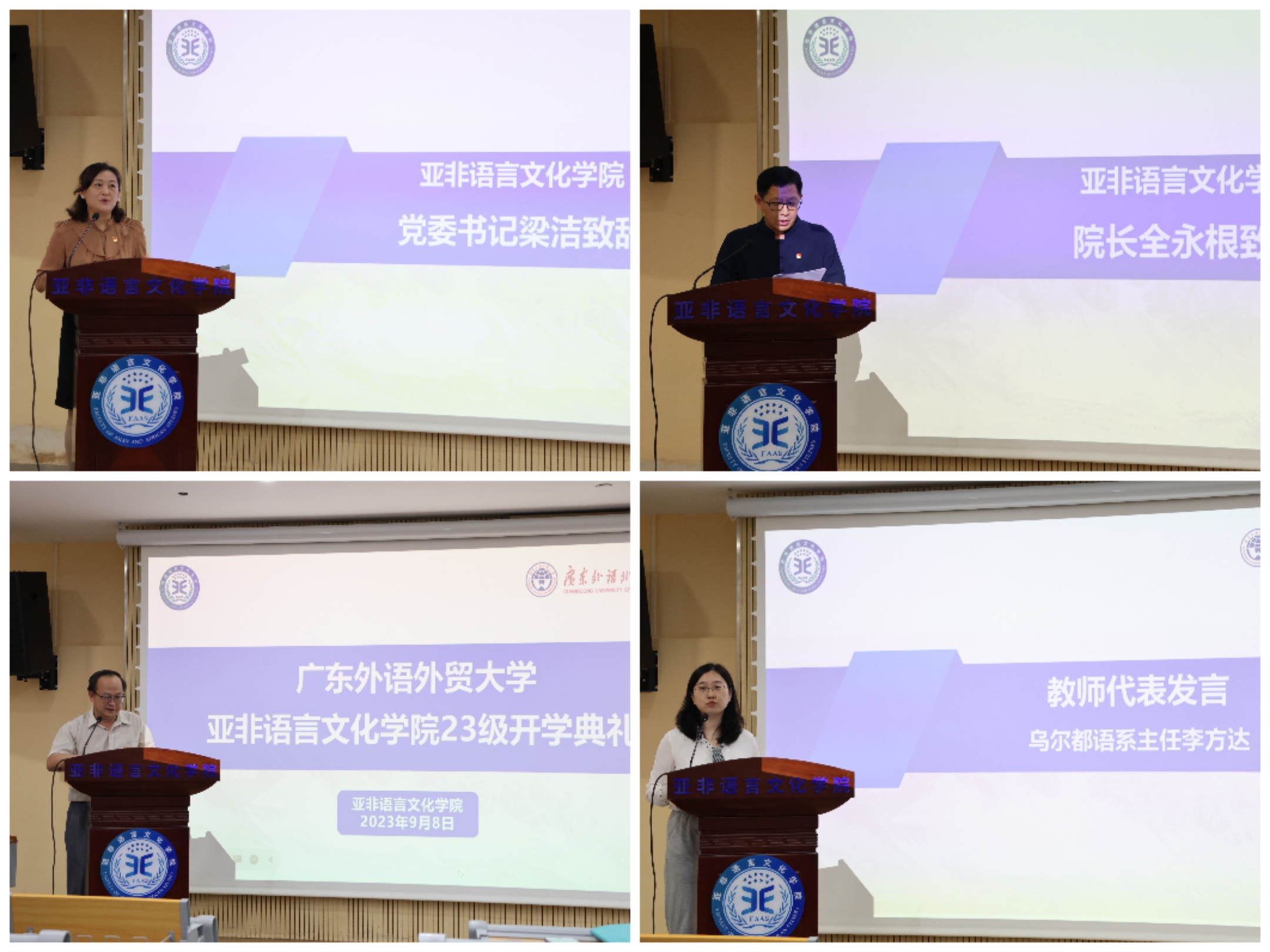 在接下来的教师代表发言环节中,公司乌尔都语系主任李方达老师代表全体教师向全体新生表示热烈欢迎。同时给予在座的同学三点建议:一是脚踏实地,志存高远;二是独立自主,学会取舍;三是和谐共处,健康成长。
