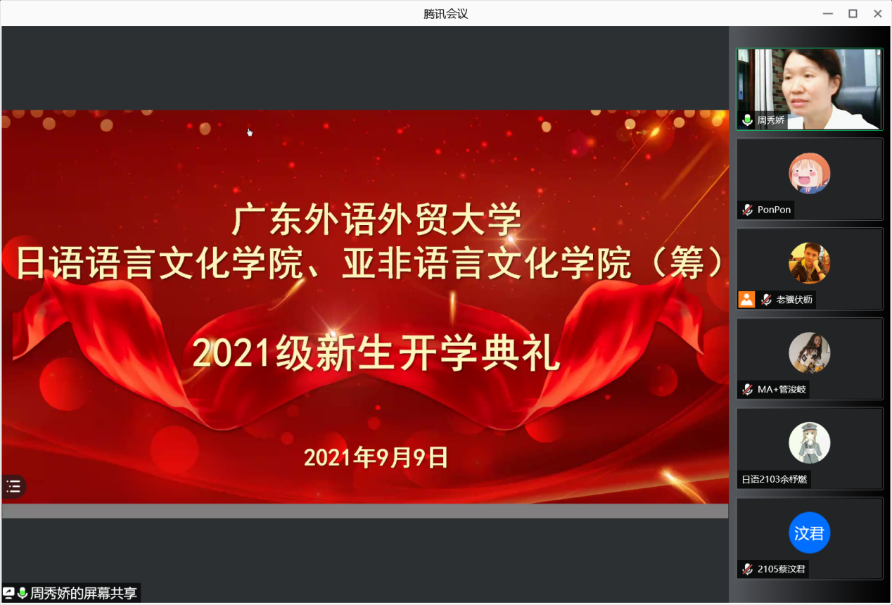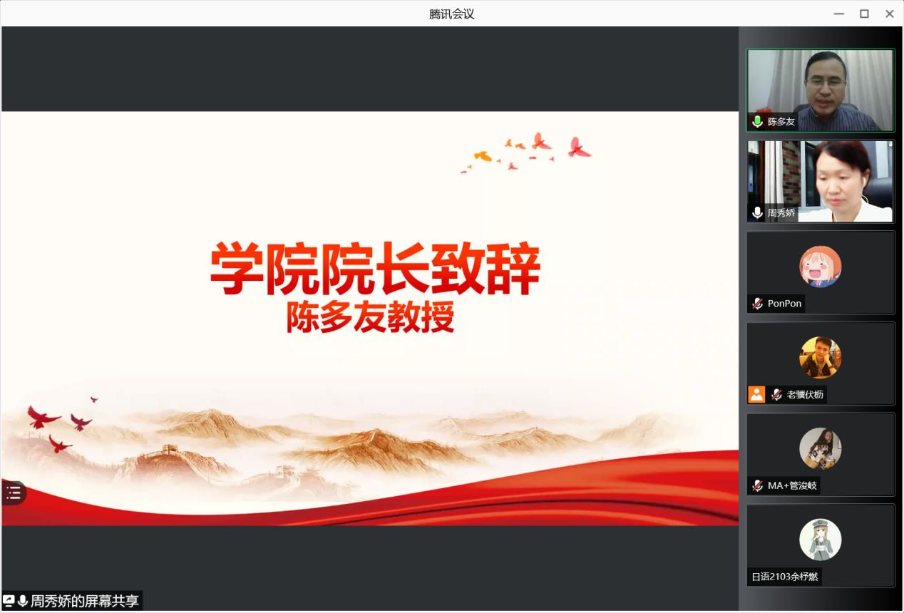 本网讯 9月9日晚上7点许,日语公司、永利集团3044am(筹)2021级新生线上开学典礼在腾讯会议平台顺利举行,公司经理陈多友,党委书记周秀娇,副经理张秀强、胡瑞、张志刚,党委副书记曾智鹏出席了本次开学典礼。开学典礼由周秀娇书记主持。