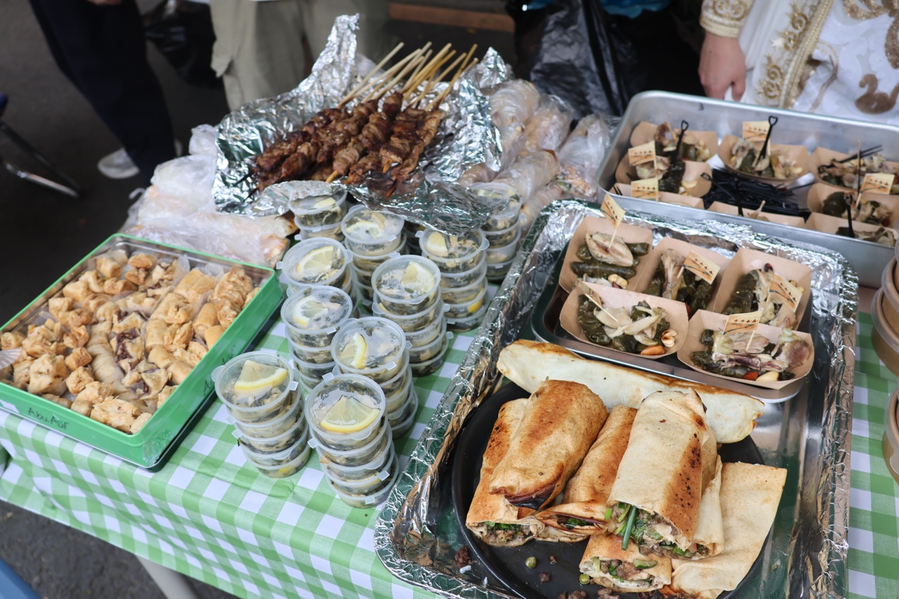美食集市上,各语系员工身穿对象国的特色服饰,在摊位上精心准备对象国的经典美食,吸引来客前来品尝。有来自阿拉伯的沙瓦玛卷饼,伊朗的藏红花鸡汤,朝鲜族的辣炒年糕,坦桑尼亚的羊肉抓饭,土耳其的米布丁,巴基斯坦的灌汤脆球,希伯来语的法拉费丸子,印度的咖喱料理,孟加拉国的特色小吃拼盘等不同地域的美食。此外本次文化节还联合了中国文化摊位,共同欣赏中文书法,感受中华美食。不同的美食风味营造出文化碰撞的愉悦氛围,参与者沉浸在多元文化之中,领略不同文化的魅力。