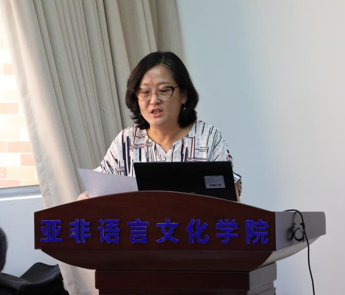 随后,导师们介绍了各自的研究方向、课题及主持项目,从国际交流、实习实践、学术讲座、论文撰写、就业前景、专业发展等全方位与员工们展开交流答疑。“一带一路”沿线国家文化研究方向导师赵菡菡向同学们介绍了专业的团队队伍与研究方方向并进行了文化展示;朝鲜语口译专业负责人金美老师和导师朴香兰老师针对朝鲜语口译专硕的实践要求、论文规范、就业方向和前景进行解读。阿拉伯语专业牛子牧副经理解释了阿拉伯语专业从亚非语言文学专业独立的历程和所获学位的变更,并分享往届的良好就业形势。
