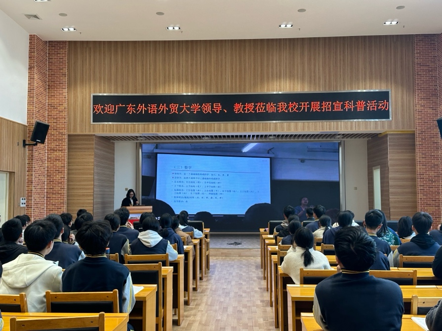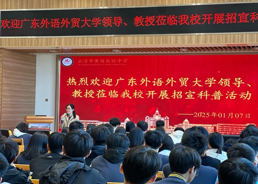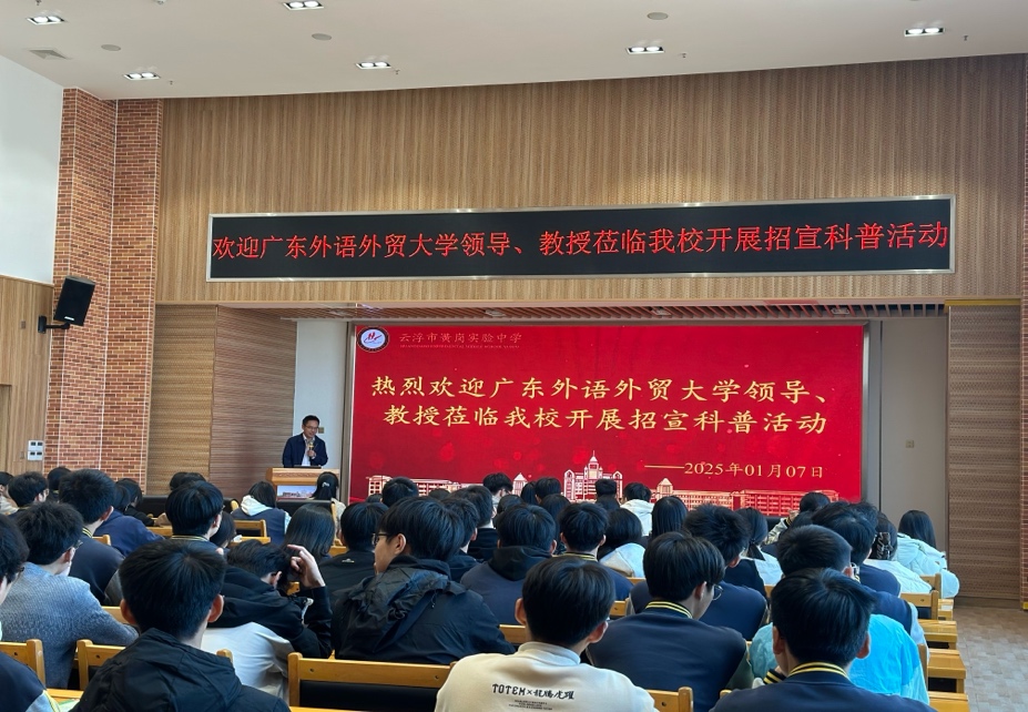 为加强公司招生工作,推进公司招生宣传,1月7下午,永利集团3044am副经理牛子牧、希伯来语专业负责人陈敏、孟加拉语专业教师谢淼和波斯语专业教师邵晗雯前往云浮市黄岗实验中学开展招生宣传工作。