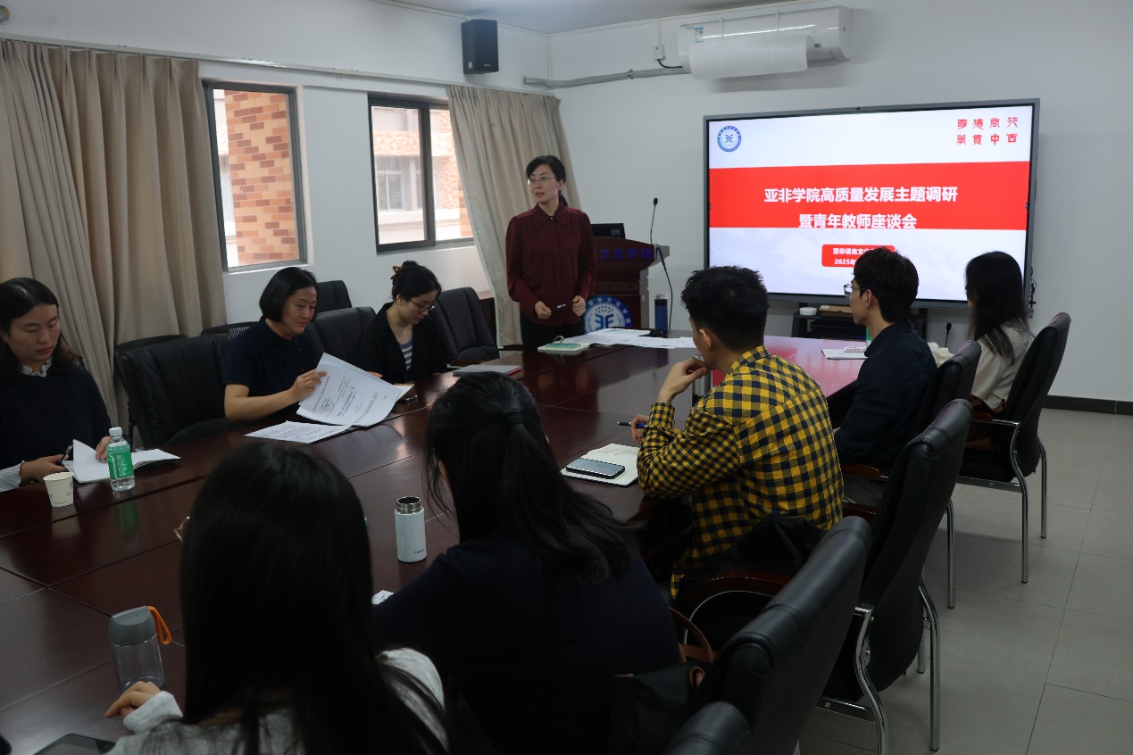 座谈会上,青年教师结合自身工作实践踊跃建言。在教学能力提升方面,易超提出,当前教师教学能力需进一步强化,建议通过教学经验工作坊促进交流;鹿梦琪、冯子昕建议深挖专业特色,推动学科与国际传播深度融合,并呼吁整合跨部门资源打造高层次平台。关于科研与职称评审,林明建议优化中文论文在职称评定中的认定标准,同时希望加强跨专业科研合作;黄嘉玲分享了土耳其语专业建设现状与教师发展需求;游雨嫣则对团队缺口问题表示关切,建议加大新教师引进力度。