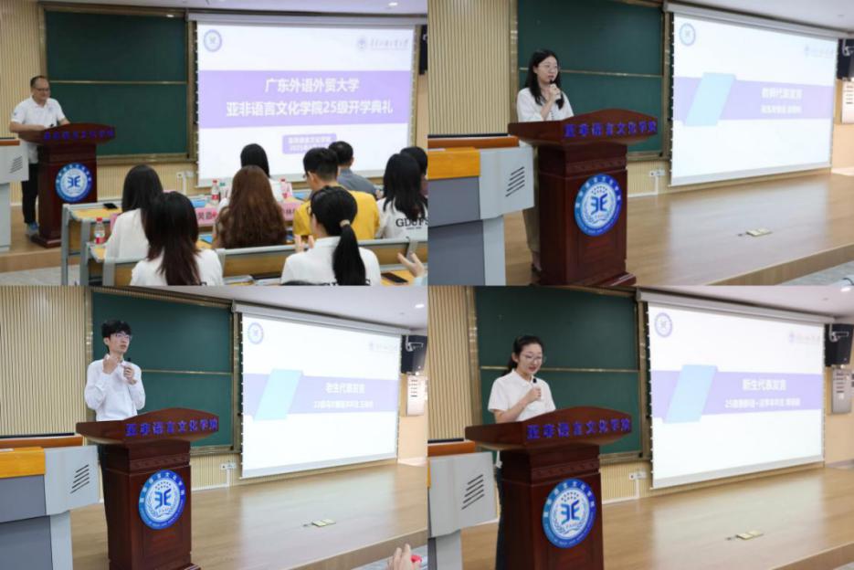 教师代表游雨嫣以“文化色彩因人的参与才有温度”为主题寄语新生,鼓励同学们以语言为钥匙,打开认识世界的大门,积极成为中国文化的传播者和跨文化交流的践行者。